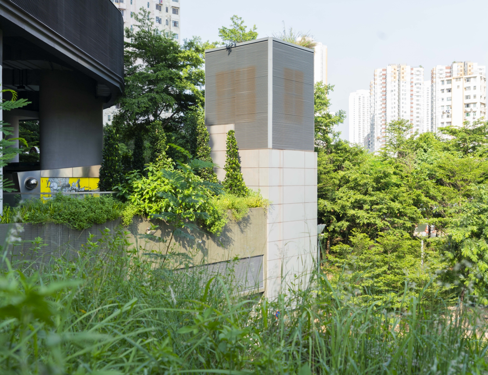 屯馬綫沙田至黃大仙段的鐵路隧道深入獅子山岩層,長達四公里,為保持隧道與外間空氣流通,須在隧道附近設置通風設施。經綠化後的通風大樓與周邊環境融合。