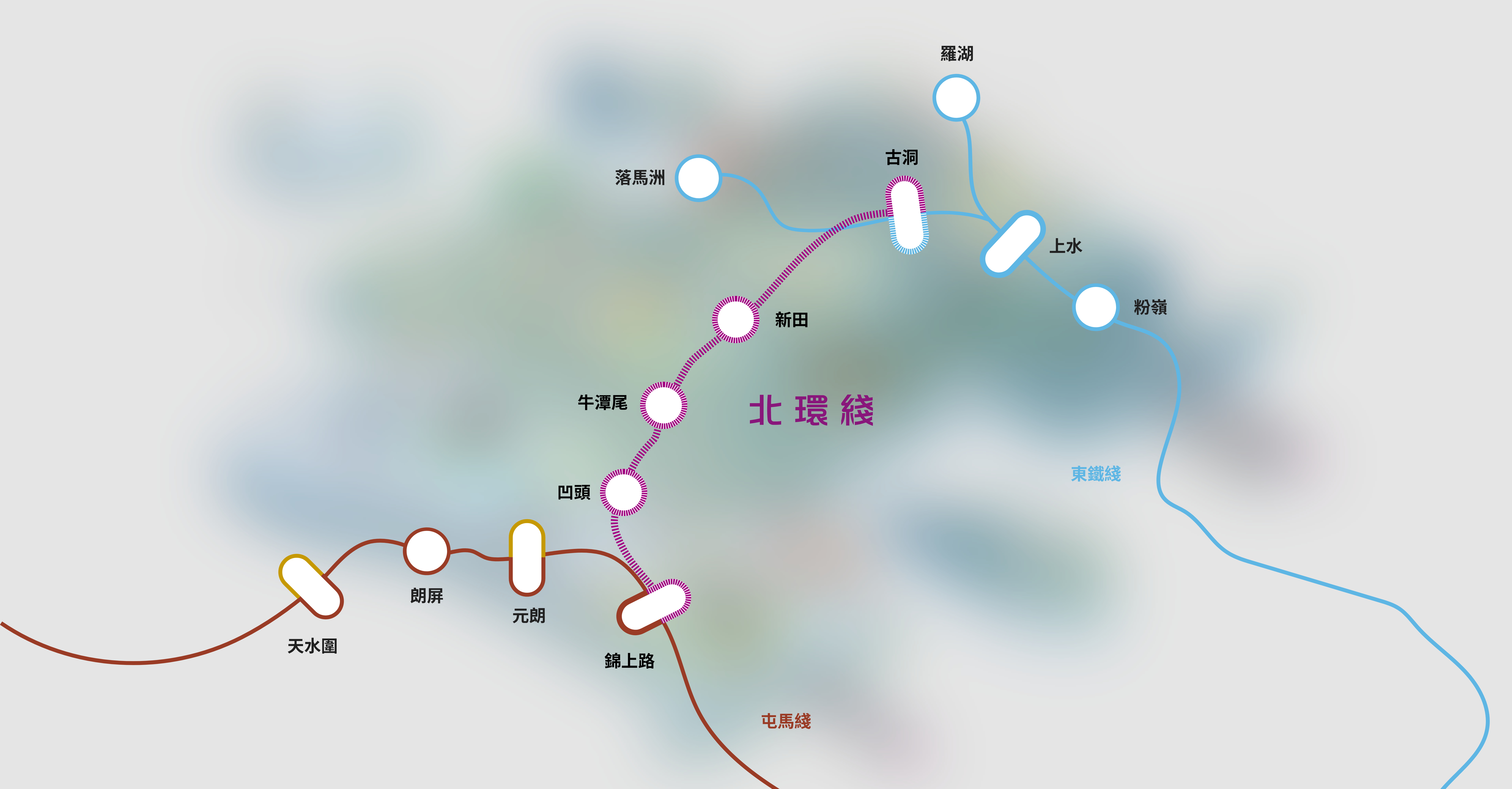 - 北環綫鐵路站均採用共融設計,並揉合環保元素、當區獨特風貌、歷史、環境和社區特色,以期各鐵路站能更好地融入社區,進一步提升乘客體驗